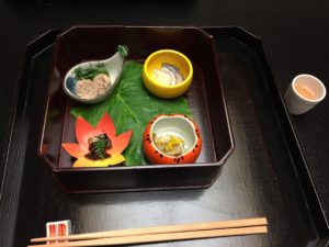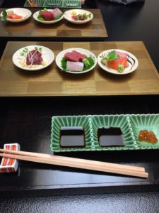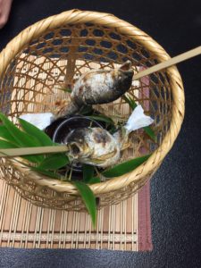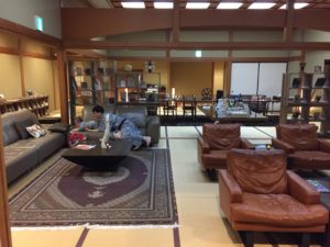 椅子と食器を貸してもらいました。作務衣も小サイズを借りて。やや大きかったけど、着れました。
