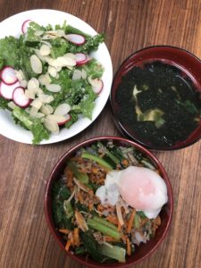 キットの中に必要な野菜や味付けひき肉、温泉卵まで入っていて、簡単に短時間で作れちゃいます。