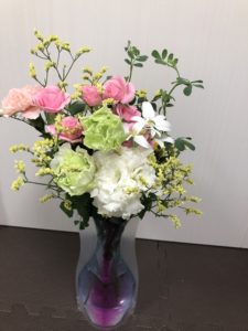 本当は結婚式で使ったお花を入れたかったのですが、無くて色の好みを伝えアレンジしてもらいました。