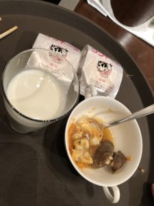 ブイヤベース、チーズタルト、牛乳。