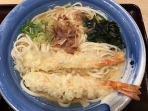 私は海老天大盛りうどん。ウェウェちゃんとシェアしました。