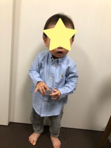 シャツは90。日本のメーカーより大きめでビックボーイのウェウェちゃんでも胴回りに余裕があります。
