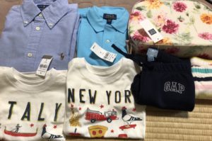 GAPでウェウェちゃんのTシャツ2枚とズボン2枚。それからいつもお世話になっているお友達の子供にもお土産で可愛いワンピースを買いました。