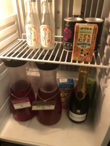 冷蔵庫の中はサイダー、ジュース、ビール、フレーバーティなど用意されていて全て無料です。