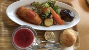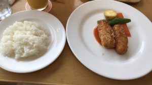 ハンバーグもコロッケも大人メニューの物と同じで、添えられたサラダも新鮮で美味しい(*´ω`*)