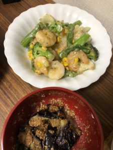 時間が無かったので副菜のナスは和えた器で出してしまいましたが…