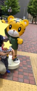 外にいたしまじろうとキティちゃん。