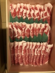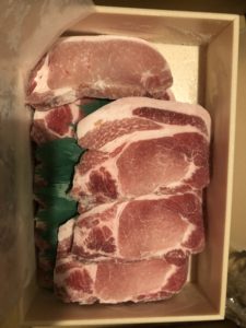 今回届いたのは豚肉のセット。14000円の寄付で1500g分のお肉です。
